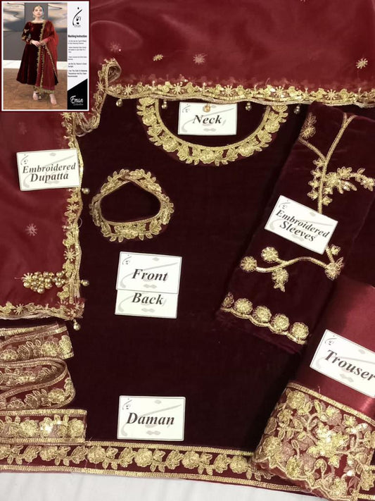 EMAN ADEEL -3PC FANCY EMBROIDERED VELVET DRESS WITH HEAVY EMBROIDERED NET DUPATTA 4 SIDE EMBROIDERED- FPW-38
