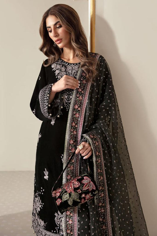 BAROQUE -3PC FANCY EMBROIDERED VELVET DRESS WITH 4 SIDE FULLY EMBROIDERED NET DUPATTA- FPW-55
