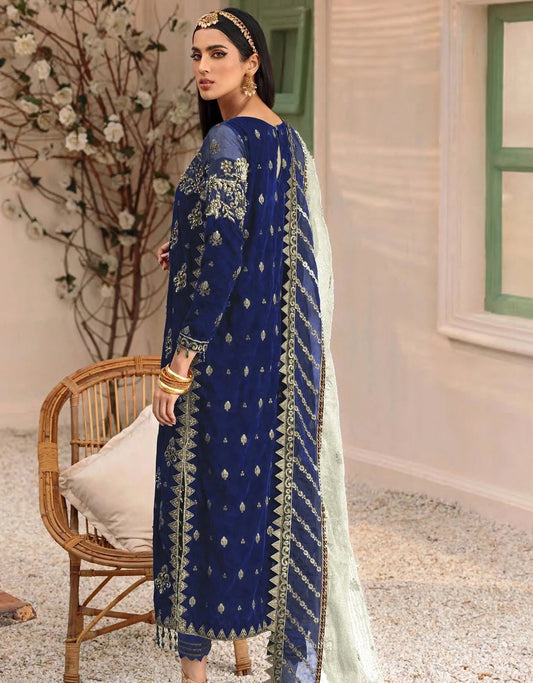 JAZMINE -3PC HEAVY EMBROIDERED VELVET FANCY DRESS WITH 4 SIDE FULLY HEAVY EMBROIDERED ORGANZA DUPATTA- FPW-99