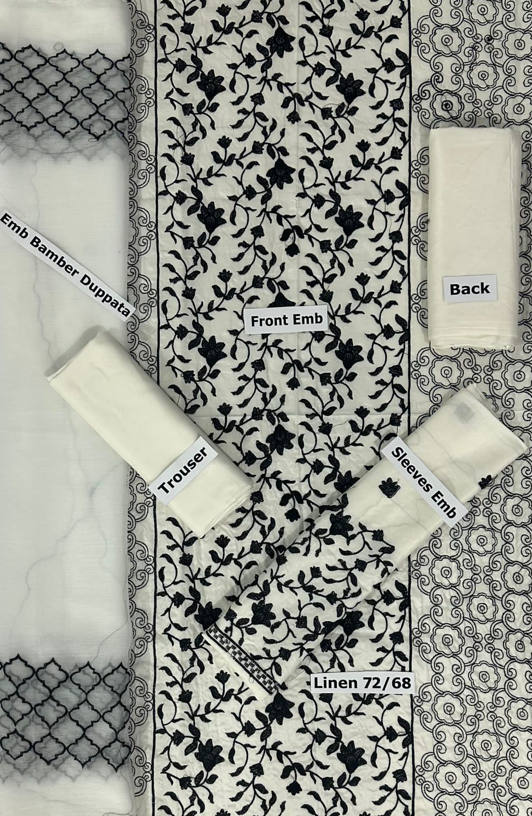 BAREEZE -3PC EMBROIDERED LINEN DRESS WITH EMBROIDERED CHIFFON DUPATTA- FW-97