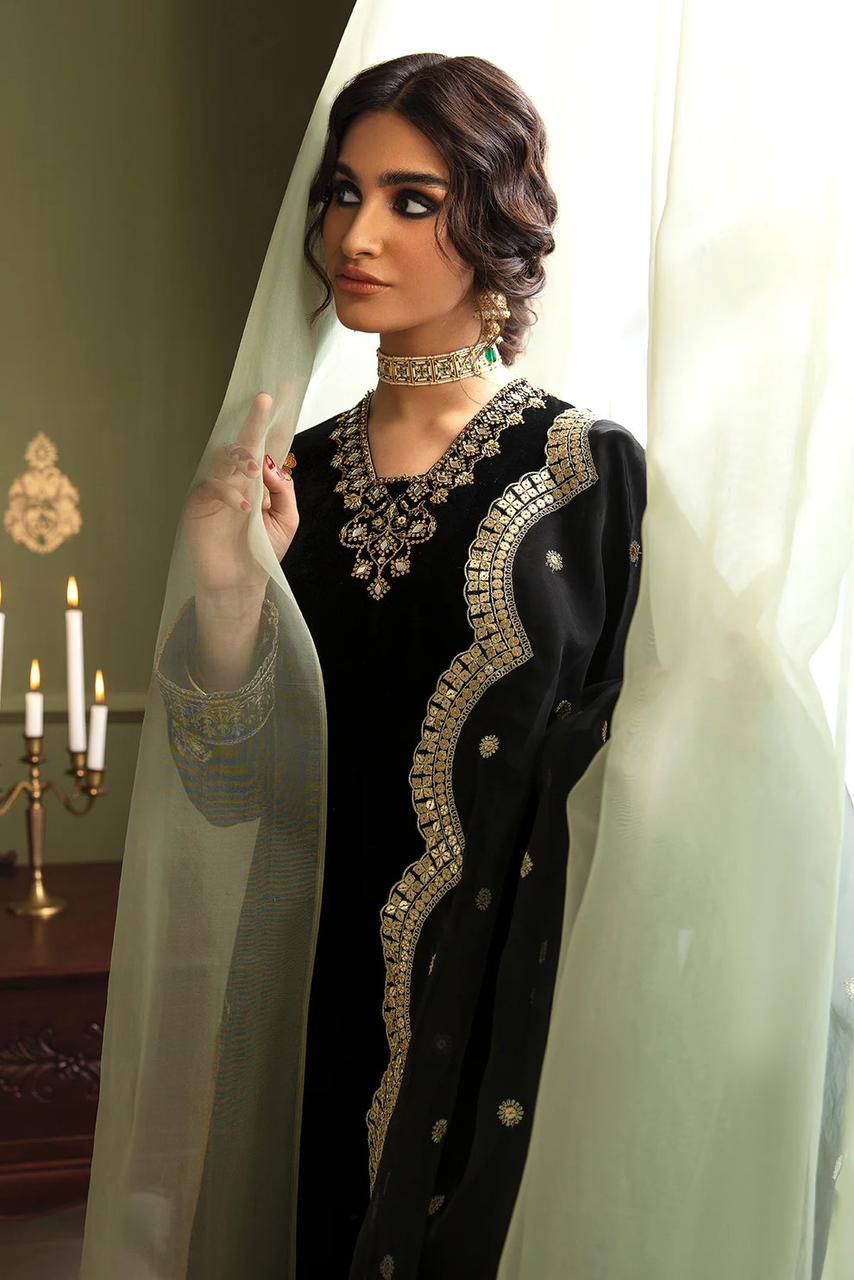 BAROQUE -3PC FANCY HEAVY EMBROIDERED VELVET DRESS WITH 4 SIDE EMBROIDERED HEAVY ORGANZA DUPATTA- FPW-89