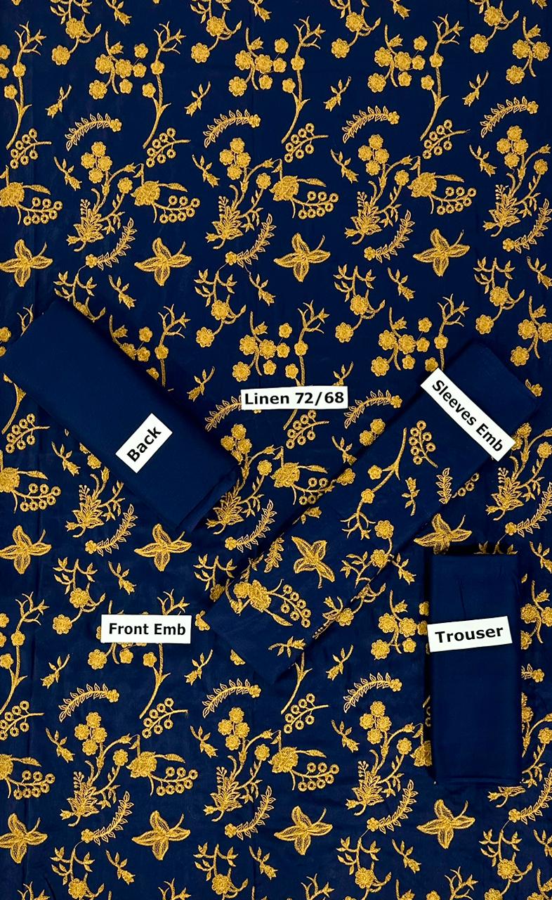 BATIK -2PC EMBROIDERED LINEN DRESS WITH LINEN TROUSER- WT-03