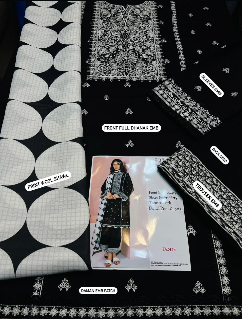 JAZMIN -3PC EMBROIDERED DHANAK DRESS WITH WOOL SHAWL- FW-82