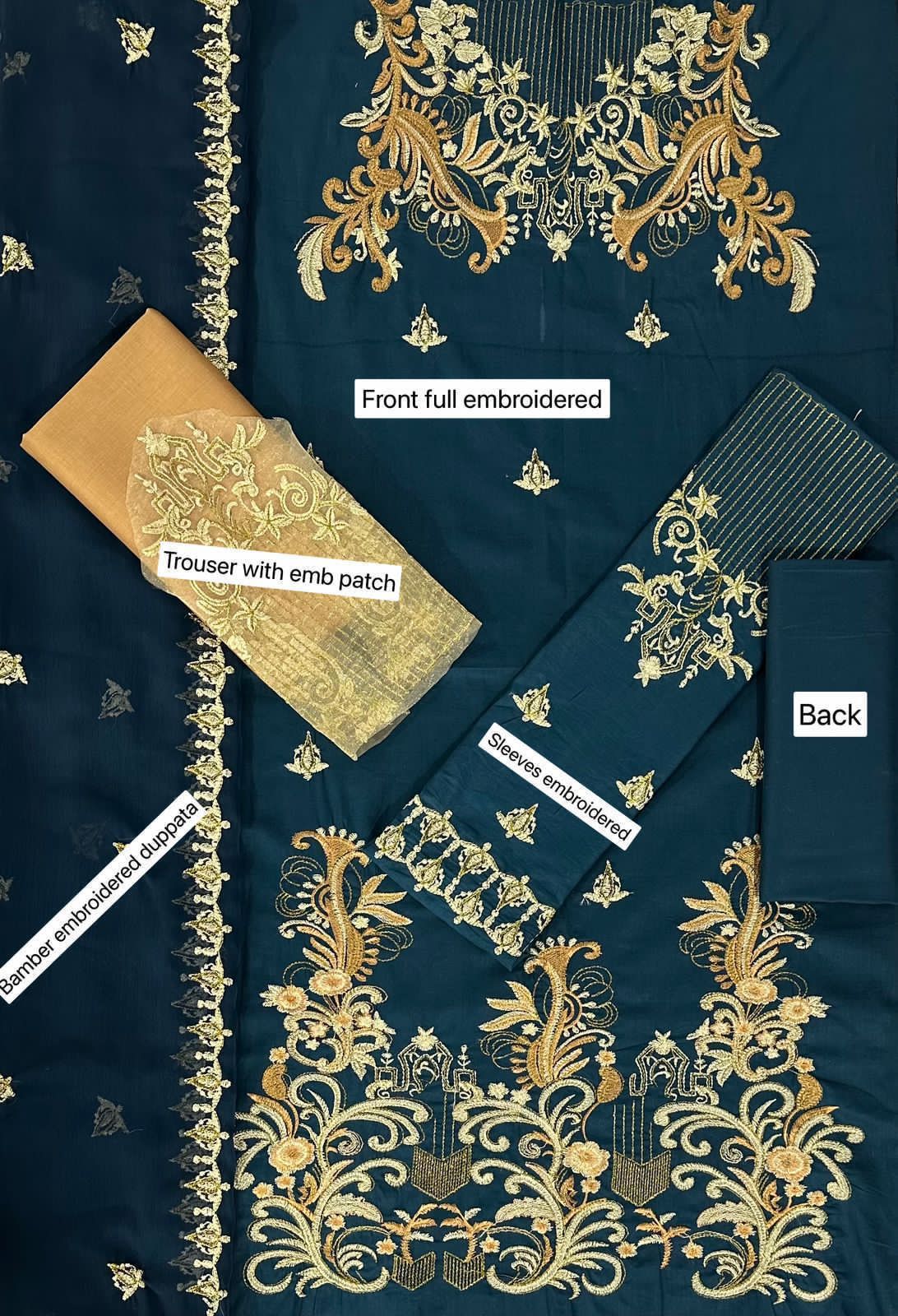 MARYUM & MARIA -3PC EMBROIDERED LINEN DRESS WITH EMBROIDERED CHIFFON DUPATTA- FW-23