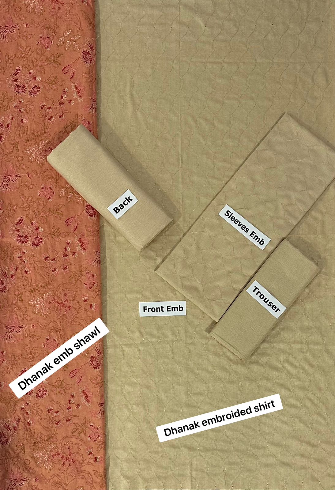 MOTIFZ -3PC EMBROIDED DHANAK DRESS WITH EMBROIDED DHANAK WOOL SHAWL- FCW-02