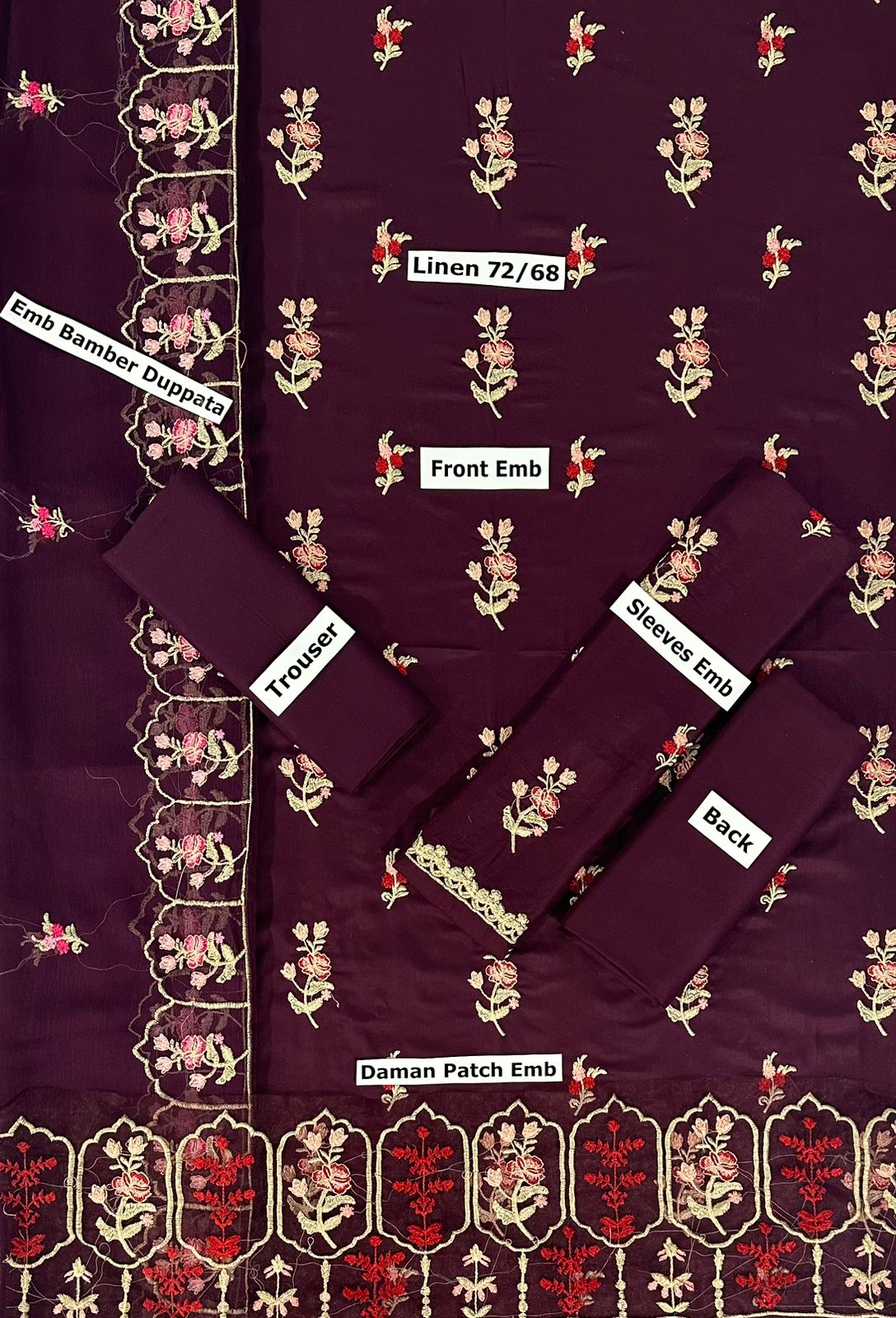 RANG RASIYA -3PC EMBROIDERED LINEN DRESS WITH EMBROIDERED CHIFFON DUPATTA- FW-25