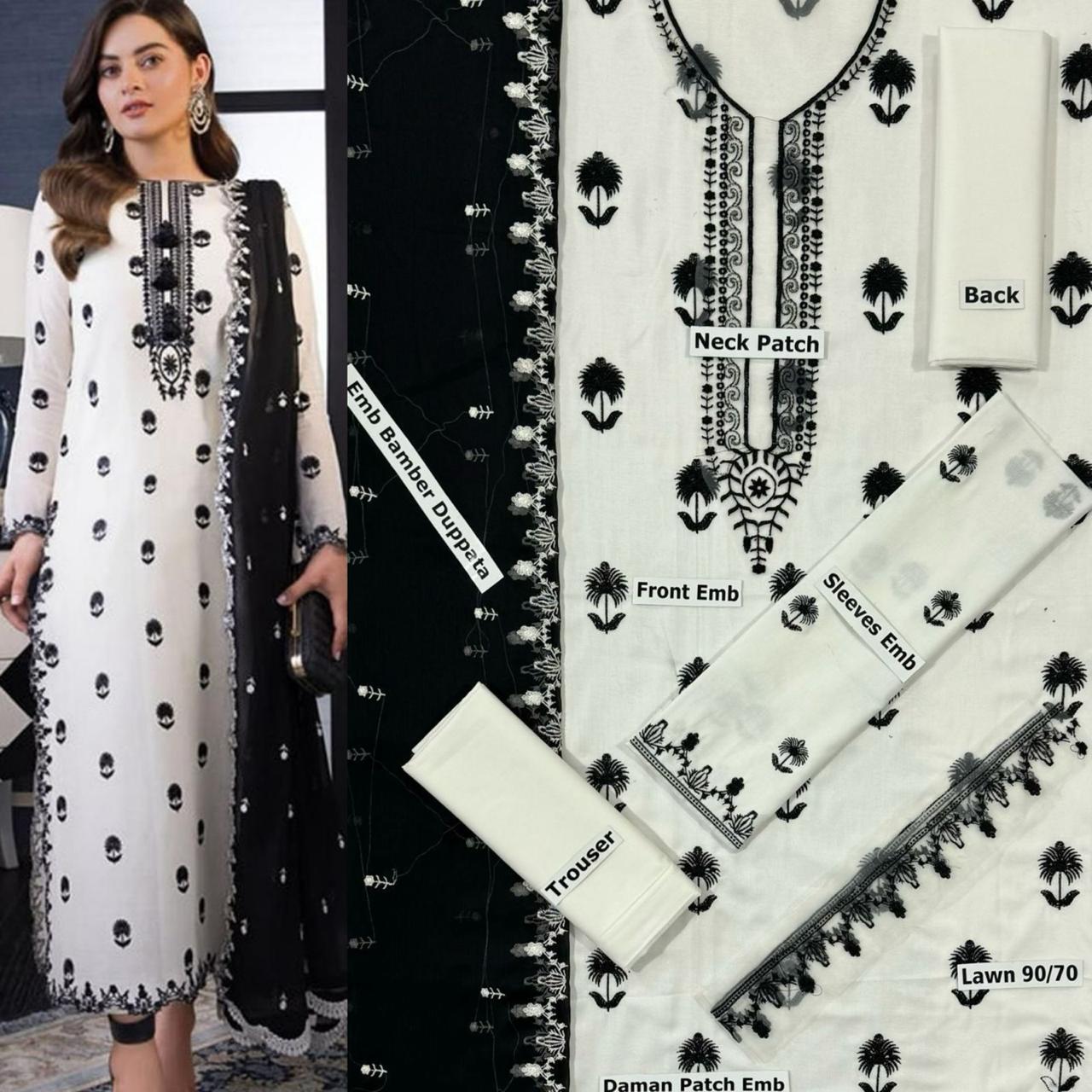 SUMMER-3 PC LAWN EMBROIDERED SHIRT WITH CHIFFON EMBROIDERED DUPPATA SALE-50