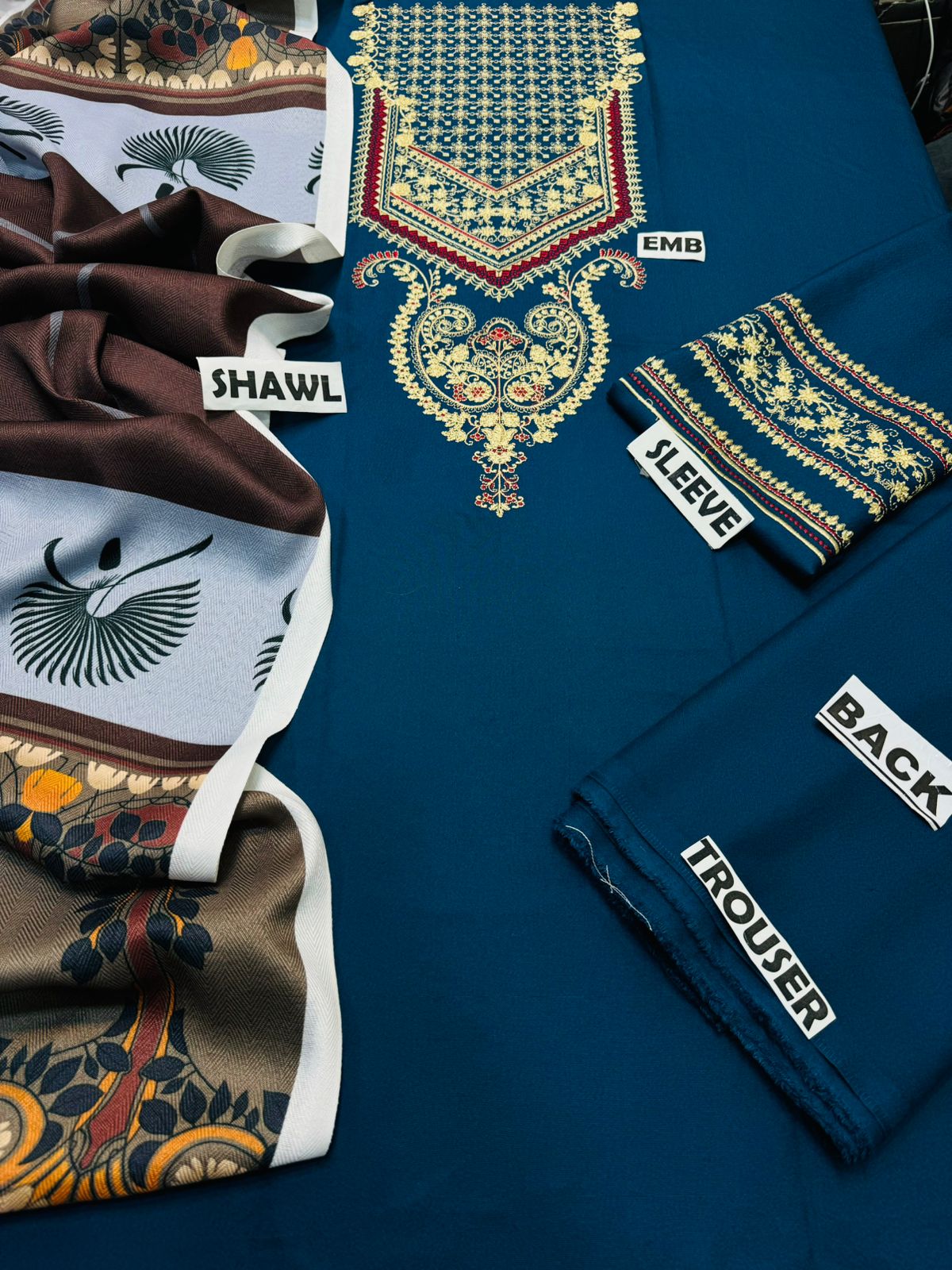 URGE -3PC EMBROIDERED DHANAK DRESS WITH DHANAK WOOL SHAWL- FW-136