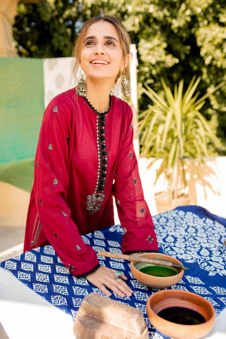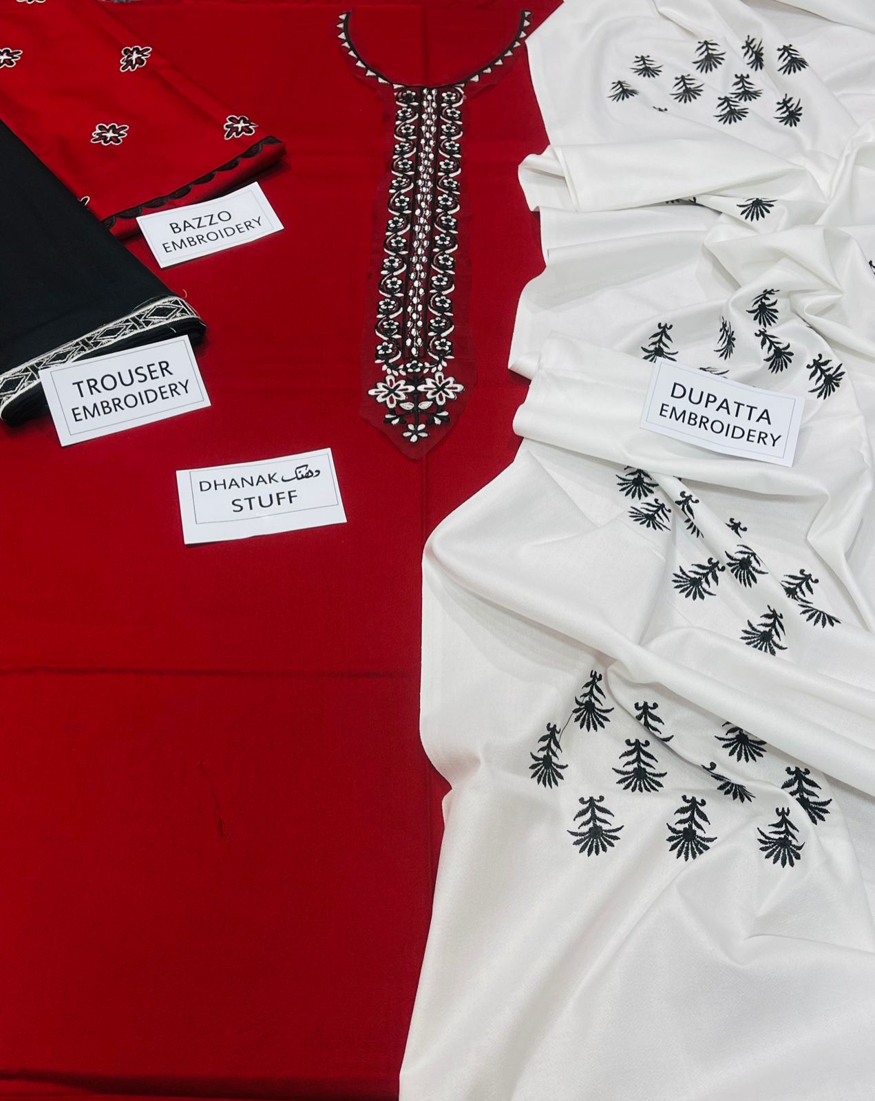 ZAHA -3PC EMBROIDERED DHANAK DRESS WITH EMBROIDERED DHANAK WOOL SHAWL- FW-93